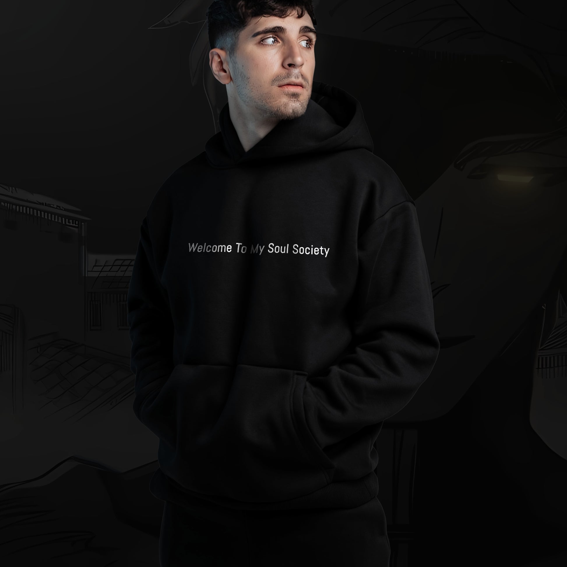 The front keeps it cold and minimal with “Welcome To My Soul Society,” perfectly matching his calm, terrifying confidence.