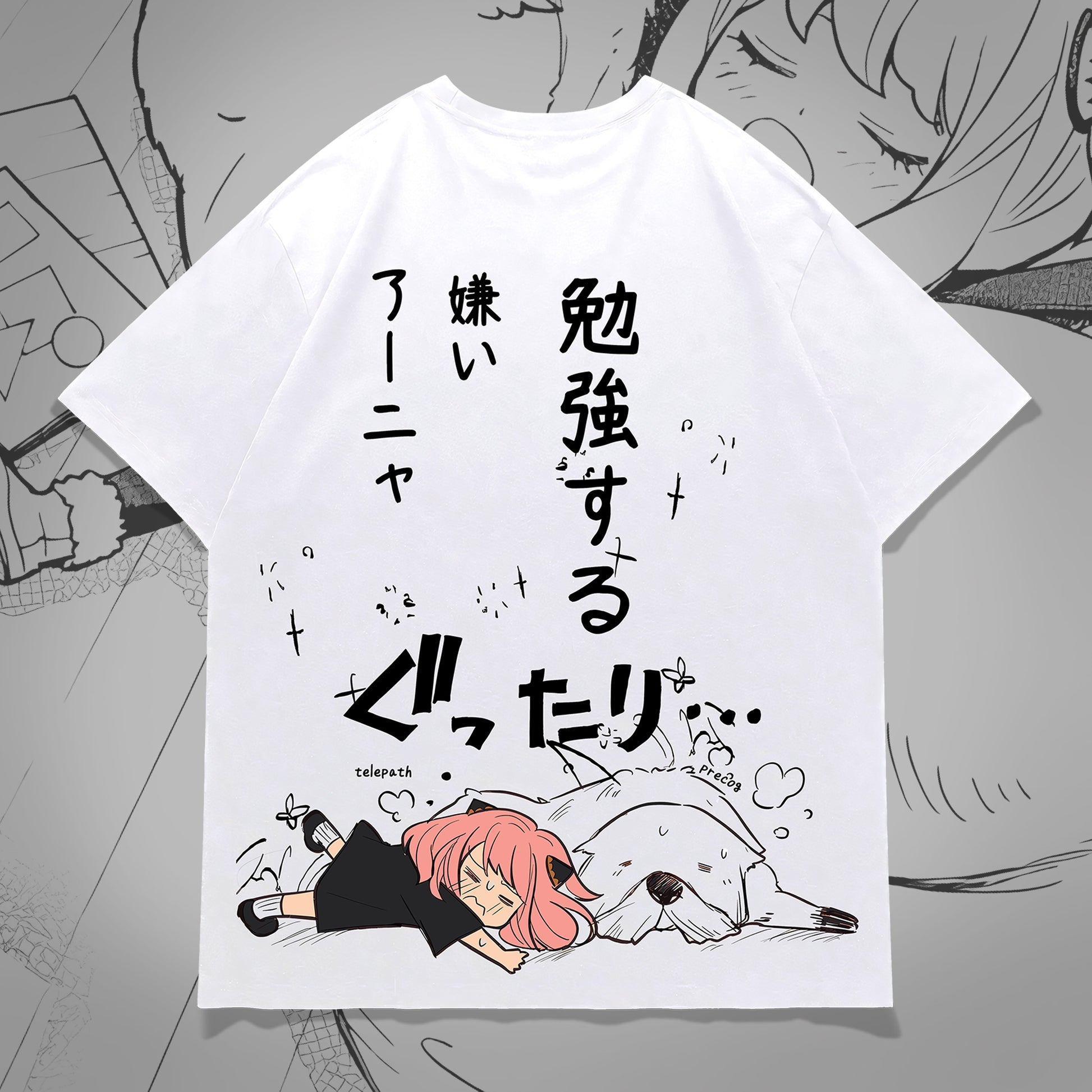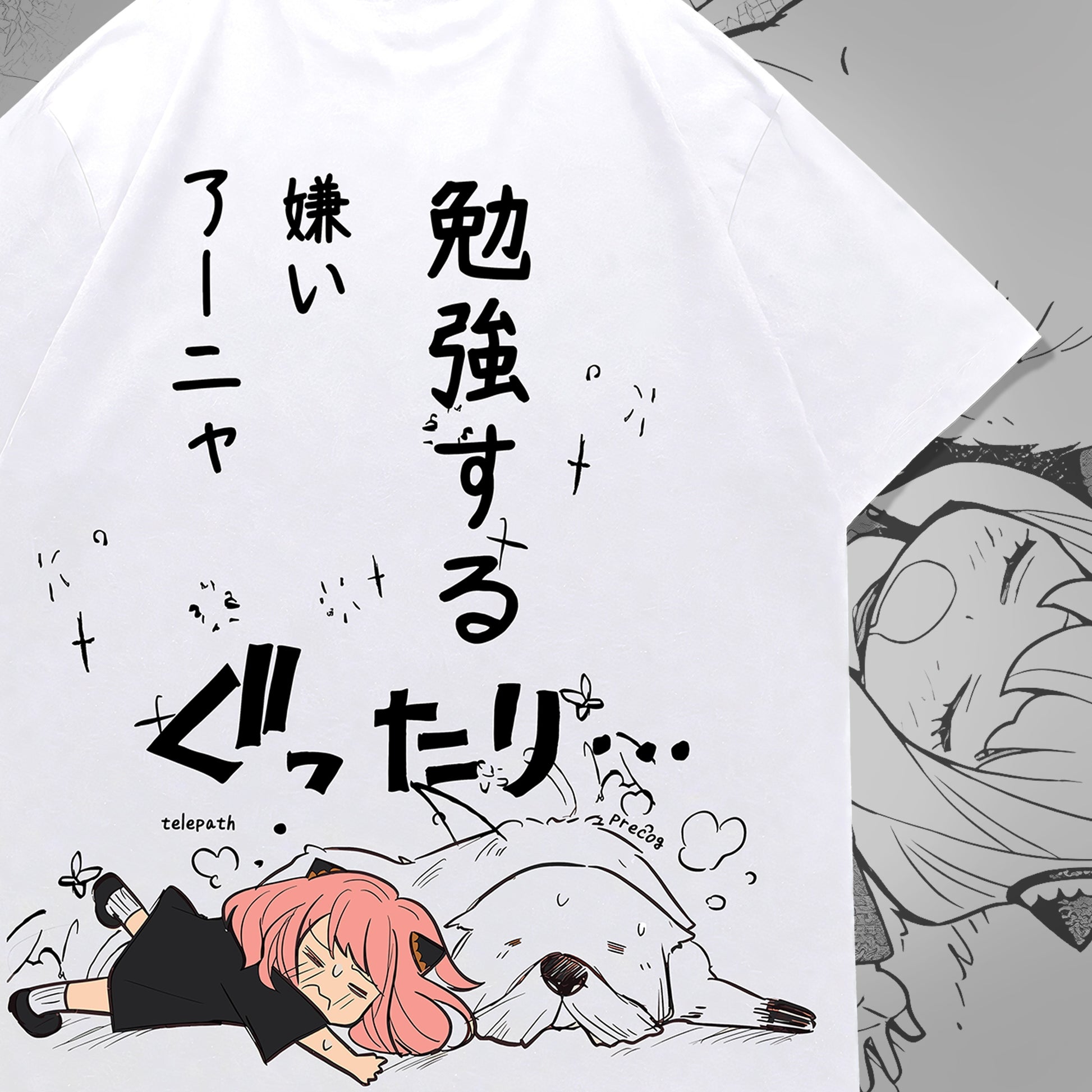 "Anya Hates Studying – Yabai!" Cute chaos alert! Featuring Anya in full ‘yabai’ mode, this tee captures her adorable energy as she dodges homework like it’s a top-secret operation. Sweet, silly, and totally lovable—perfect for fans who believe in fun first, studying later, and of course… no study, no peanuts!