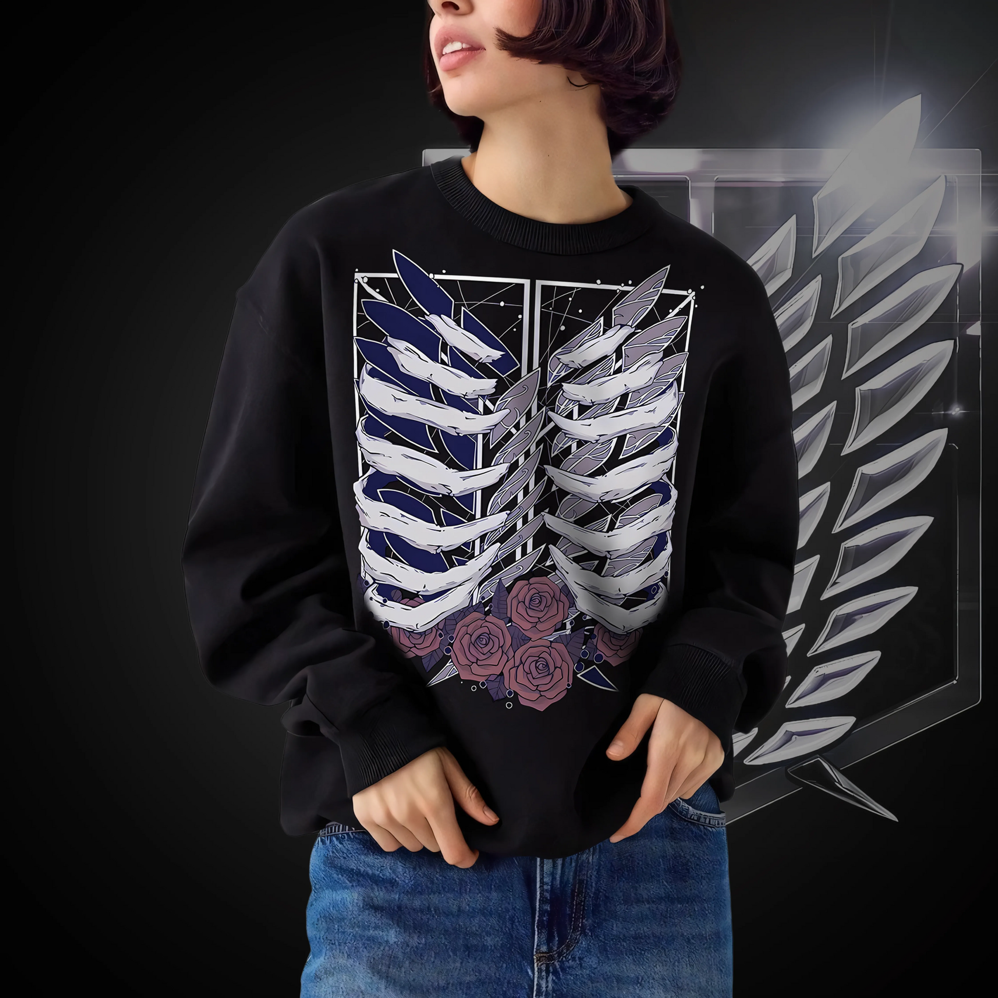 Soar with the Wings of Freedom – AOT Ribcage Emblem Oversized Sweatshirt