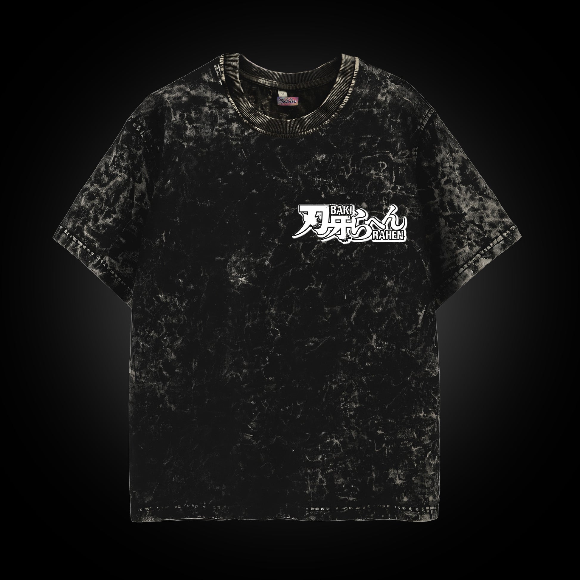 The acid-wash texture adds a bold, vintage edge that mirrors Baki’s rugged spirit and relentless drive. Built for those who rise, fight, and push beyond limits, this tee isn’t just for fans — it’s for anyone who believes in earning power through pain.