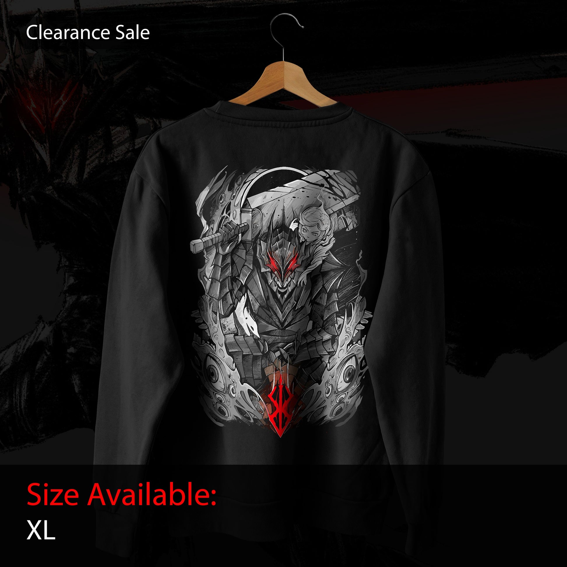 Brand your devotion to the struggler with this bold Berserk Sweatshirt. Featuring Guts' Imposing Black Armor, this sweatshirt lets the world know you stand with the Black Swordsman. Whether you're battling apostles or conquering your day, this Berserk sweatshirt is the perfect companion.
