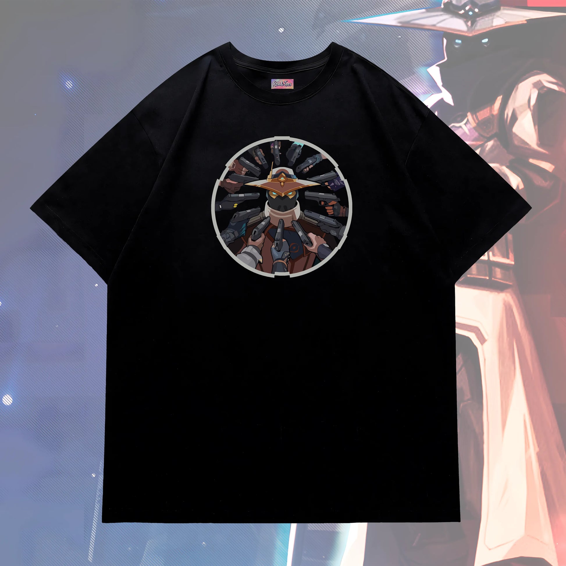 Surrounded but never cornered — this Cypher tee captures the ultimate mind game. The design shows Valorant’s surveillance master locked in the crosshairs, guns aimed from every direction, yet his piercing gaze stays calm and unshaken. A bold tribute to Cypher mains who thrive under pressure and always keep control of the game.