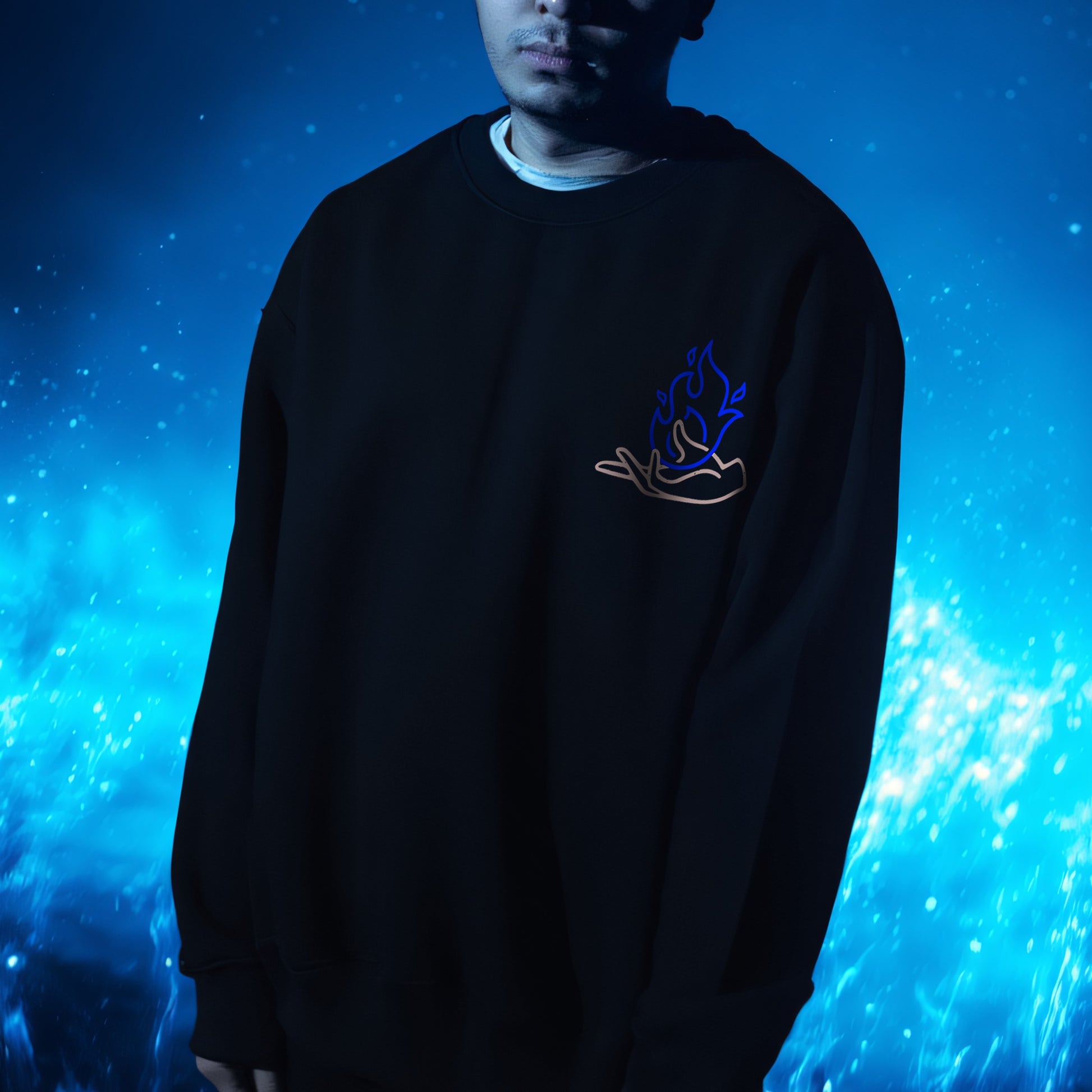 Engulfed in his own inferno, Dabi stands as a symbol of vengeance and pain. The front carries a subtle flame emblem — calm yet dangerous — while the back erupts with his haunting form, consumed by blue fire. This sweatshirt captures the raw duality of control and chaos — for those who burn bright, no matter the cost.