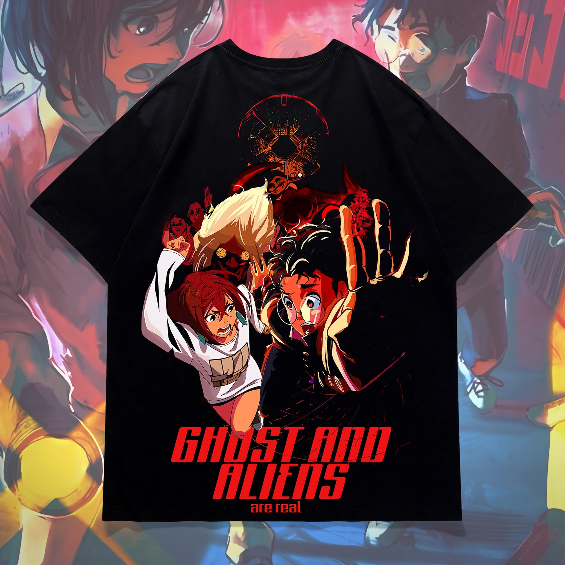 Aliens, ghosts, curses, chaos — and somehow it all makes sense. This tee captures the raw energy of Dandadan with the main trio caught mid-mayhem. Bold text on the back says it all: Ghost and Aliens Are Real. The front? Just enough to warn 'em.