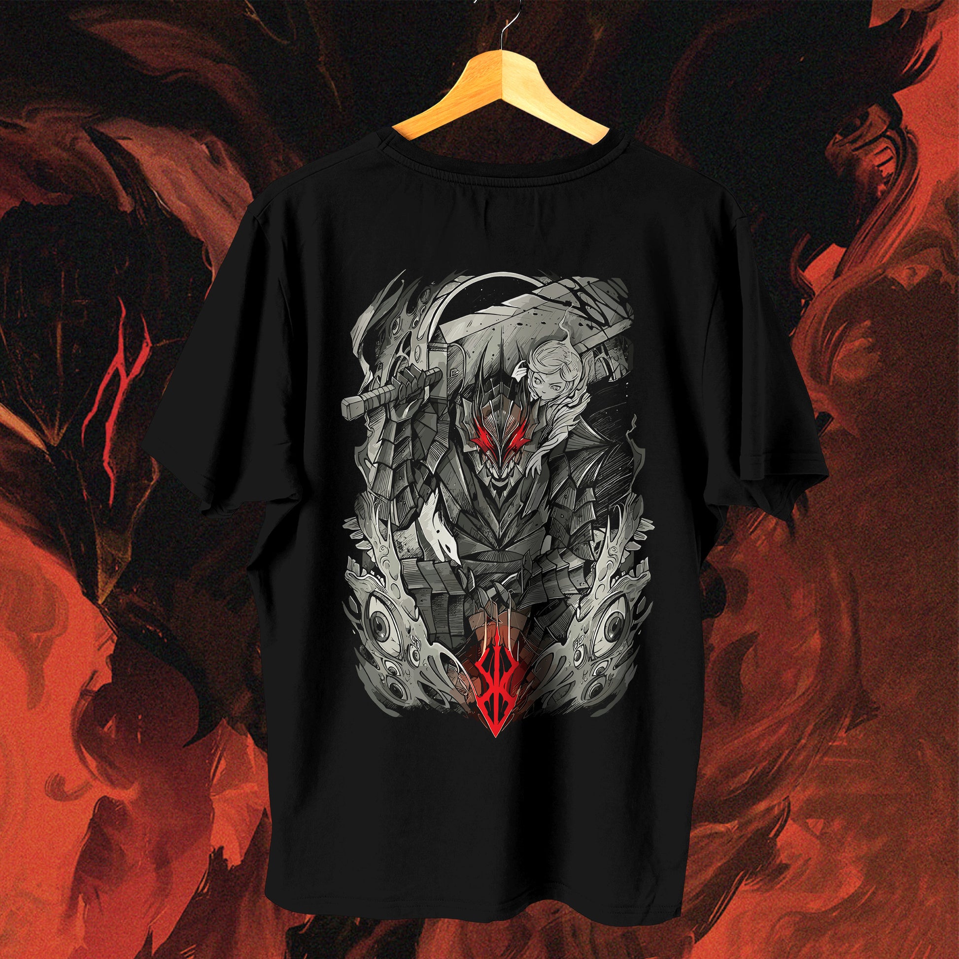 Brand your devotion to the struggler with this bold Berserk Tee. Featuring Guts' Imposing Black Armor, this shirt lets the world know you stand with the Black Swordsman. Whether you're battling apostles or conquering your day, this Berserk tshirt is the perfect companion.