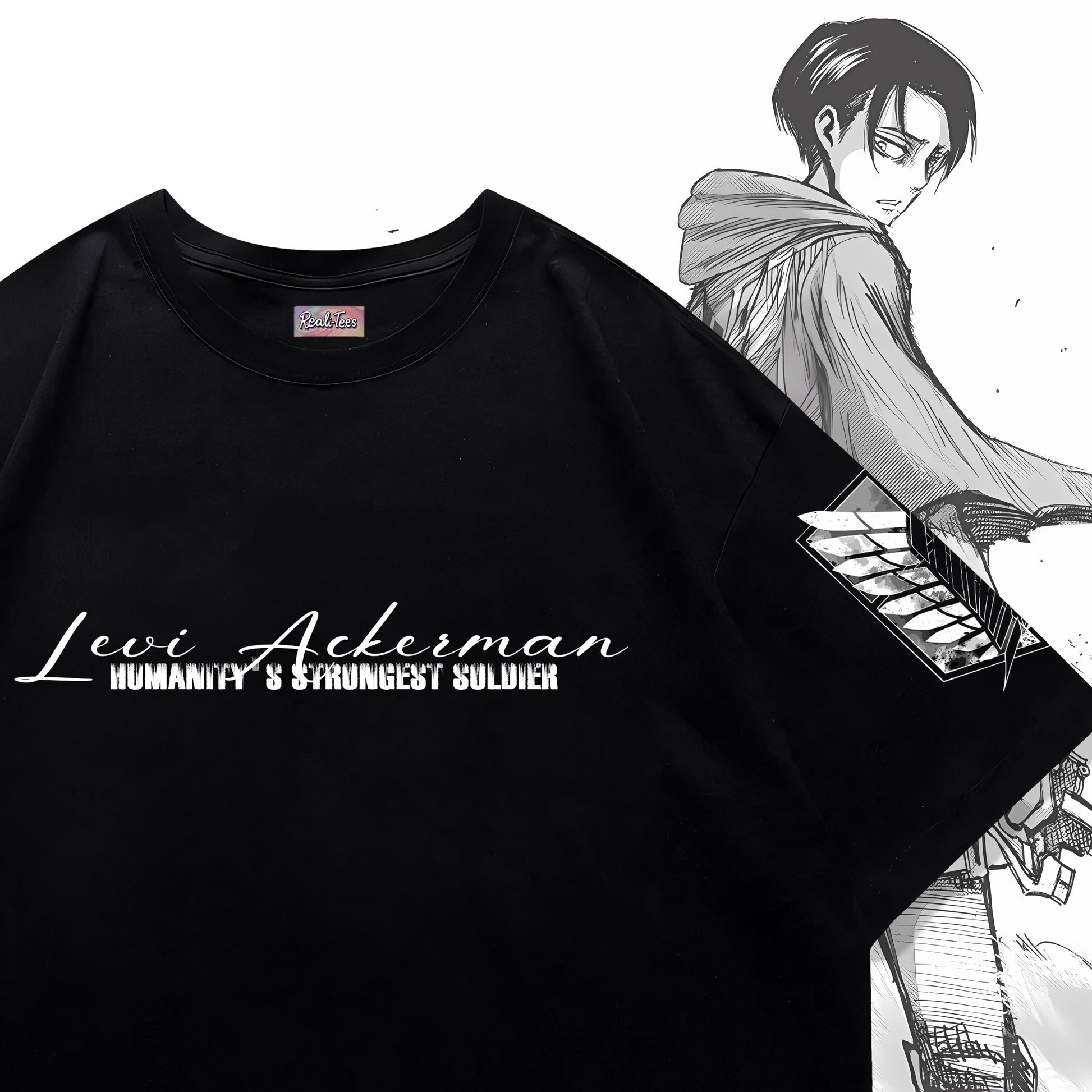 #LeviAckerman #AttackOnTitan #AOTMerch #HumanitysStrongest #AnimeStreetwear #OtakuFashion #AnimeTshirt #MangaArt #Realitees