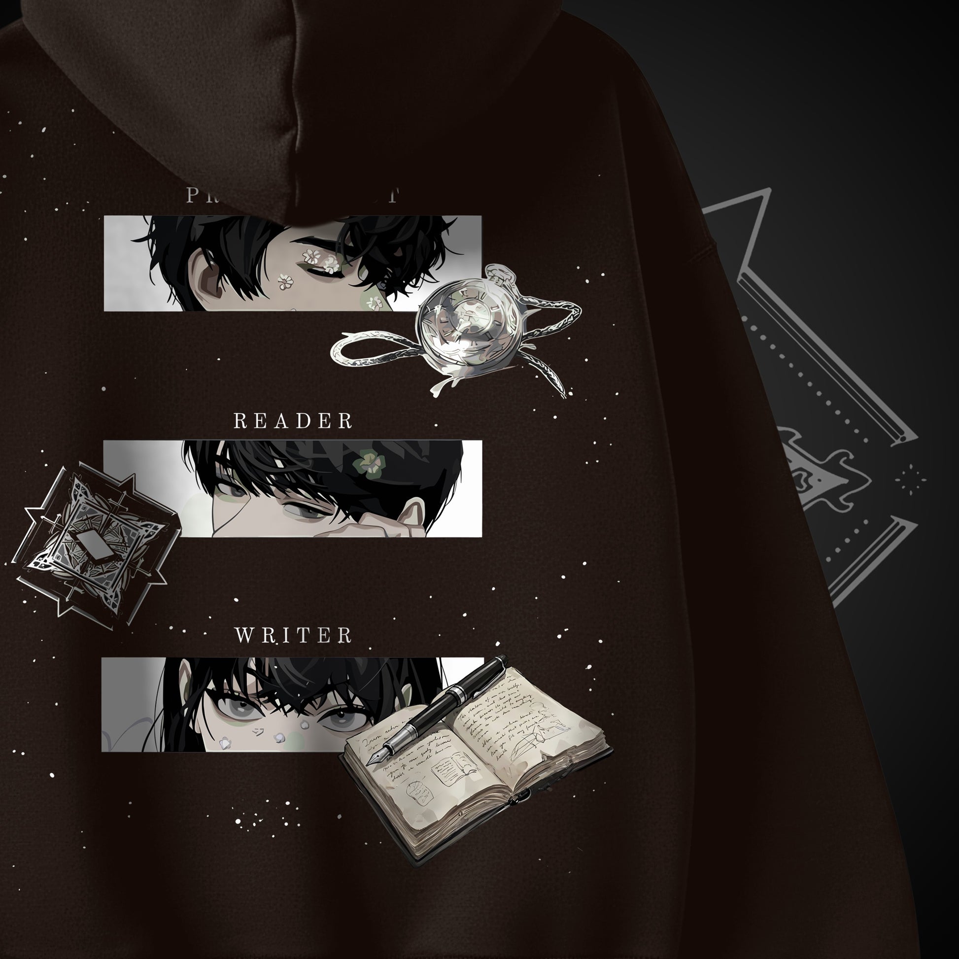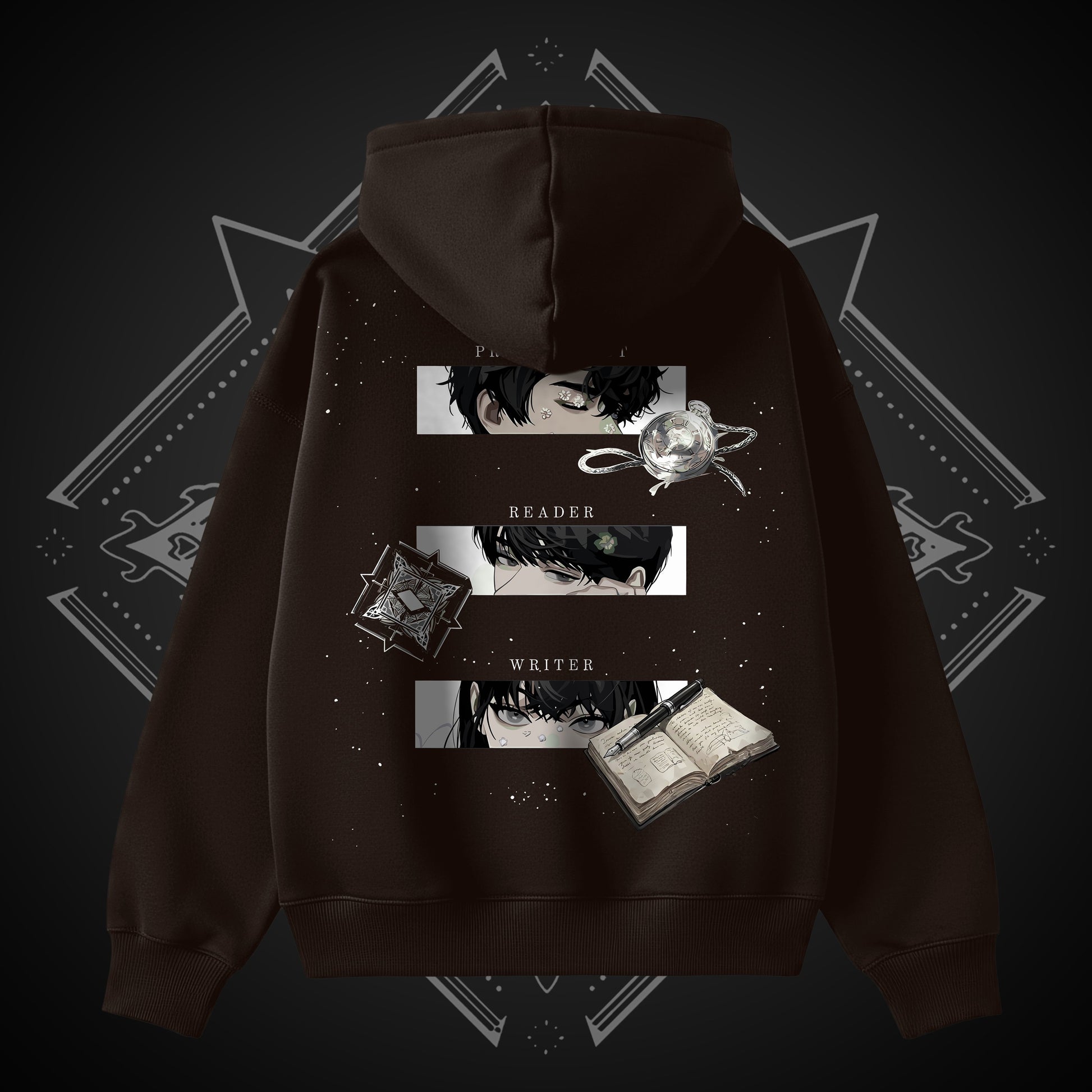 Inspired by Omniscient Reader’s Viewpoint, this hoodie brings together the three forces that shape the narrative: Kim Dokja as the Reader, Han Sooyoung as the Writer, and Yoo Joonghyuk as the Protagonist.