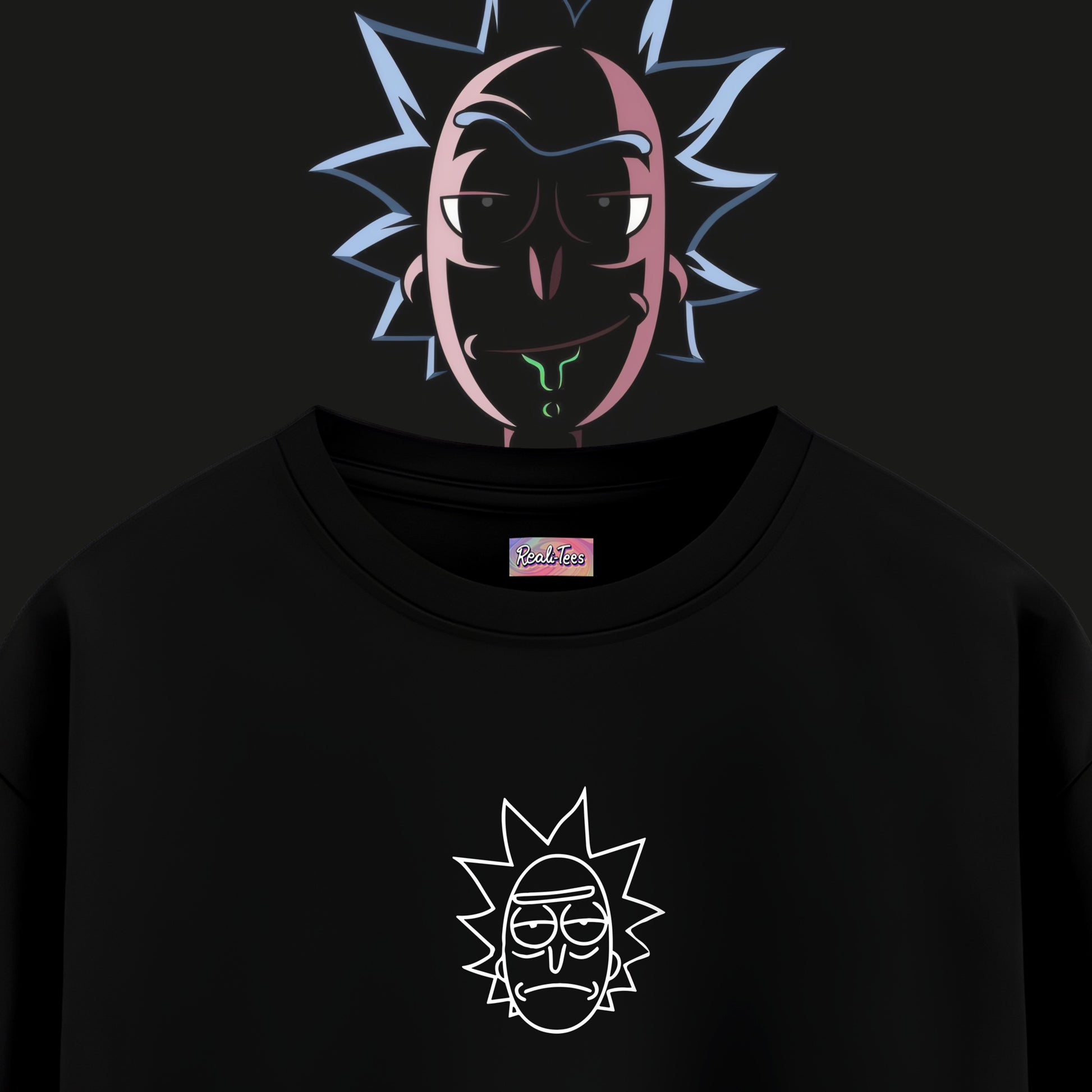 Find your inner genius with this psychedelic tribute to Rick Sanchez. Featuring a clean, minimalist line-art front and a vibrant, four-armed "Zen Rick" on the back, this piece blends high-concept sci-fi with a trippy streetwear aesthetic. A bold, cosmic essential for those navigating the chaos of the multiverse in style.
