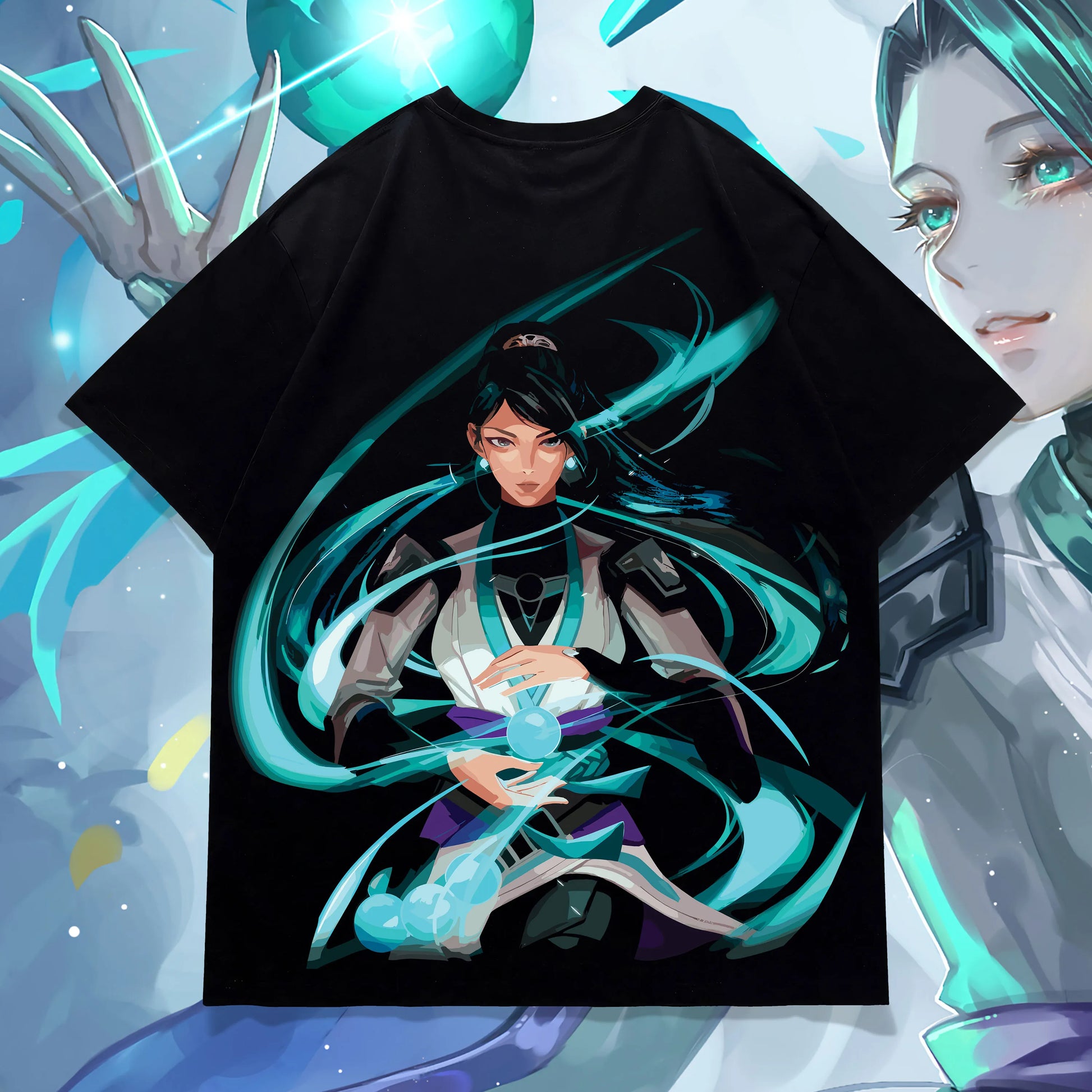 Balance, strength, and serenity — this tee captures Sage in her most powerful form. The back showcases an elegant full-body artwork of the Valorant sentinel, with her flowing energy orbs swirling around her. The front carries her mantra: “Through the calm, I see. Through the storm, I fight.” A perfect blend of grace and resilience for Sage mains who heal, protect, and fight with unwavering resolve.