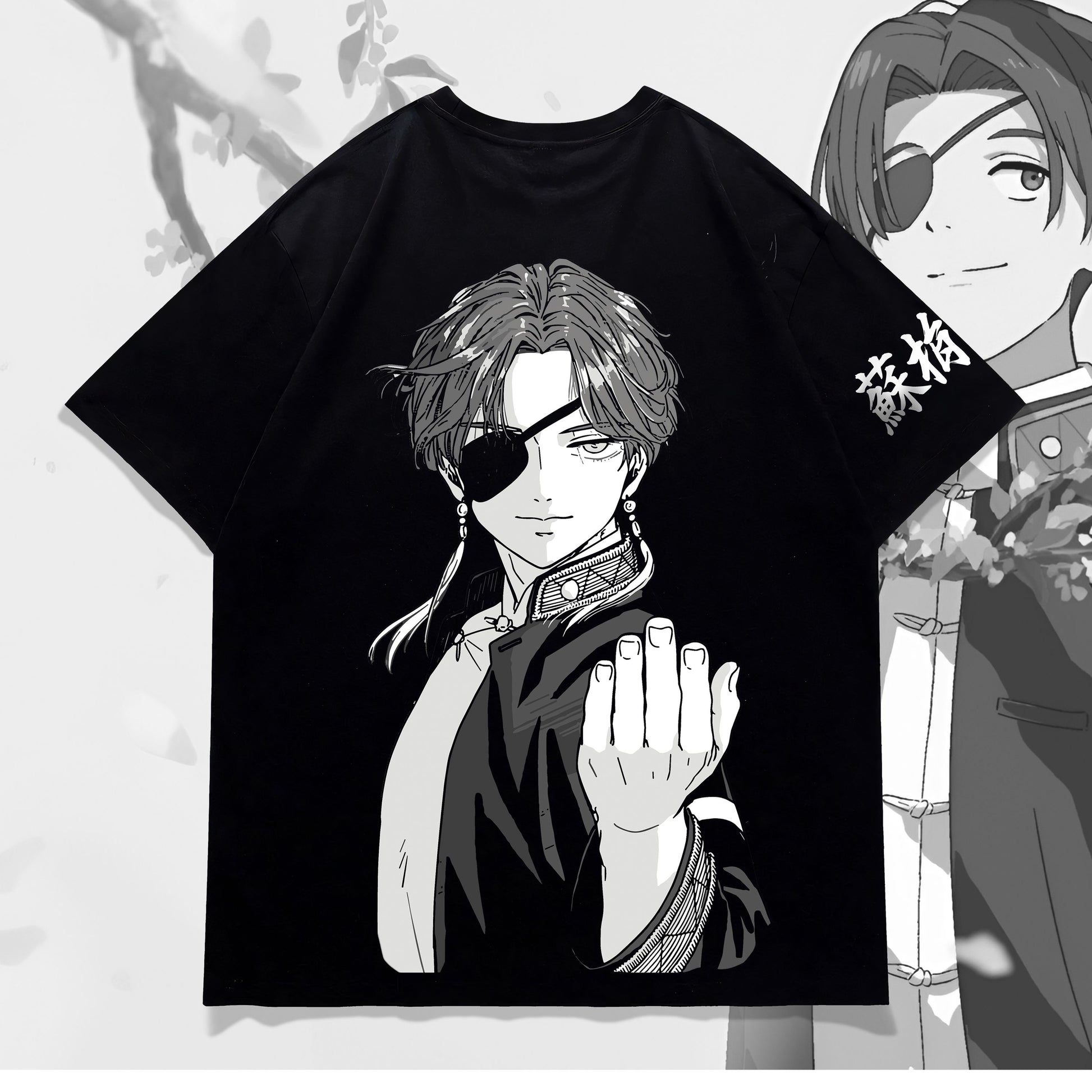 With one eye veiled and one hand extended, Suo Hayato doesn’t fight — he invites you into his storm. This tee captures the calm control and magnetic presence of the leader of Bofurin in stunning detail. The back features an oversized, manga-style illustration of Hayato in his signature pose — confident, unreadable, and unshakable. The front and sleeves are marked with his school crest and name in kanji, adding authenticity and depth for fans who know the weight behind the symbols.
