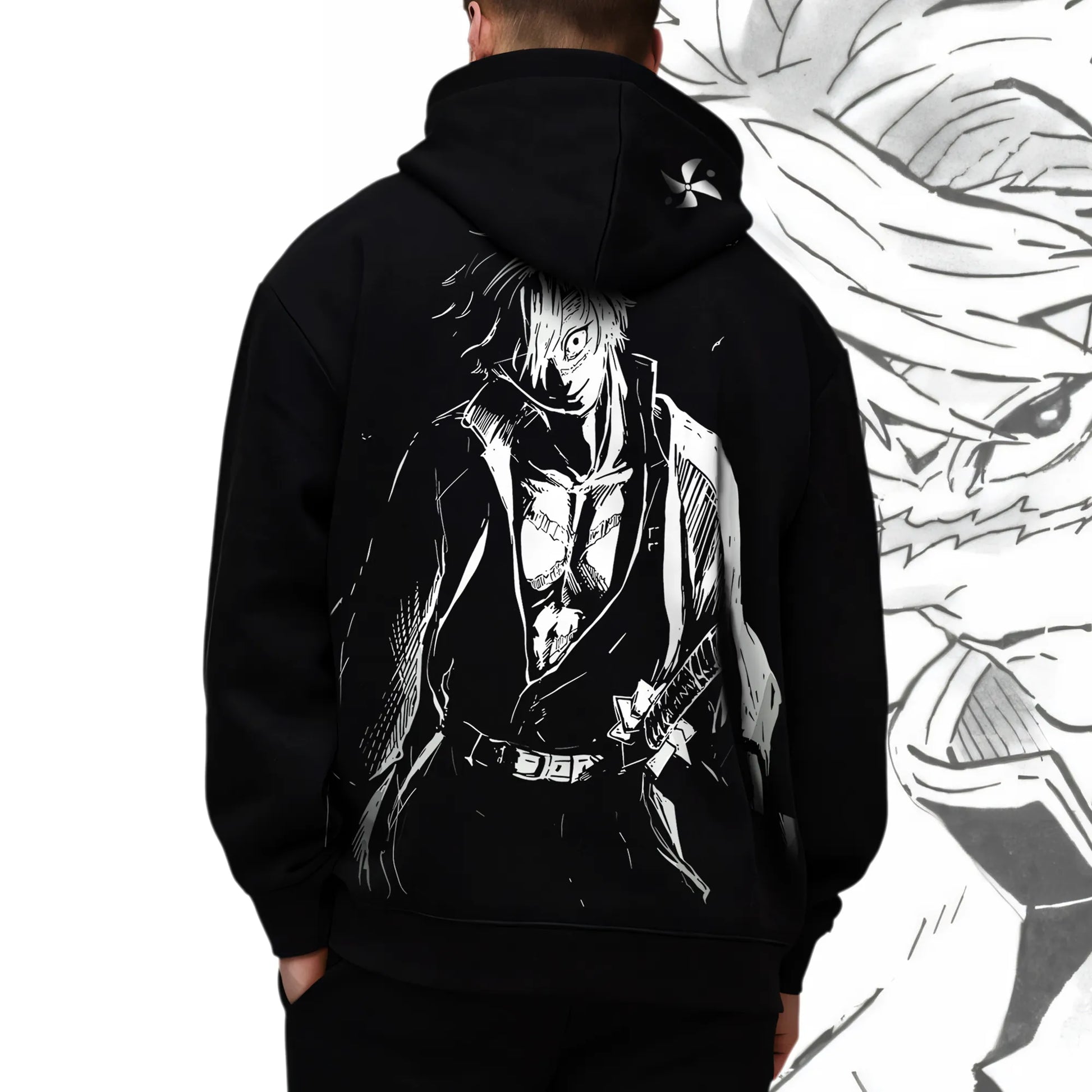 Unleash the fury of Sanemi Shinazugawa with this bold hoodie. The back features a striking monochrome sketch of the Wind Hashira in all his rage-filled glory, while the front is stamped with the powerful kanji “殺” (Kill). On the right side of the hood, Sanemi’s Wind Hashira mark adds the finishing touch — a subtle yet iconic detail for true fans. Raw, ruthless, and made for those who carry the storm.