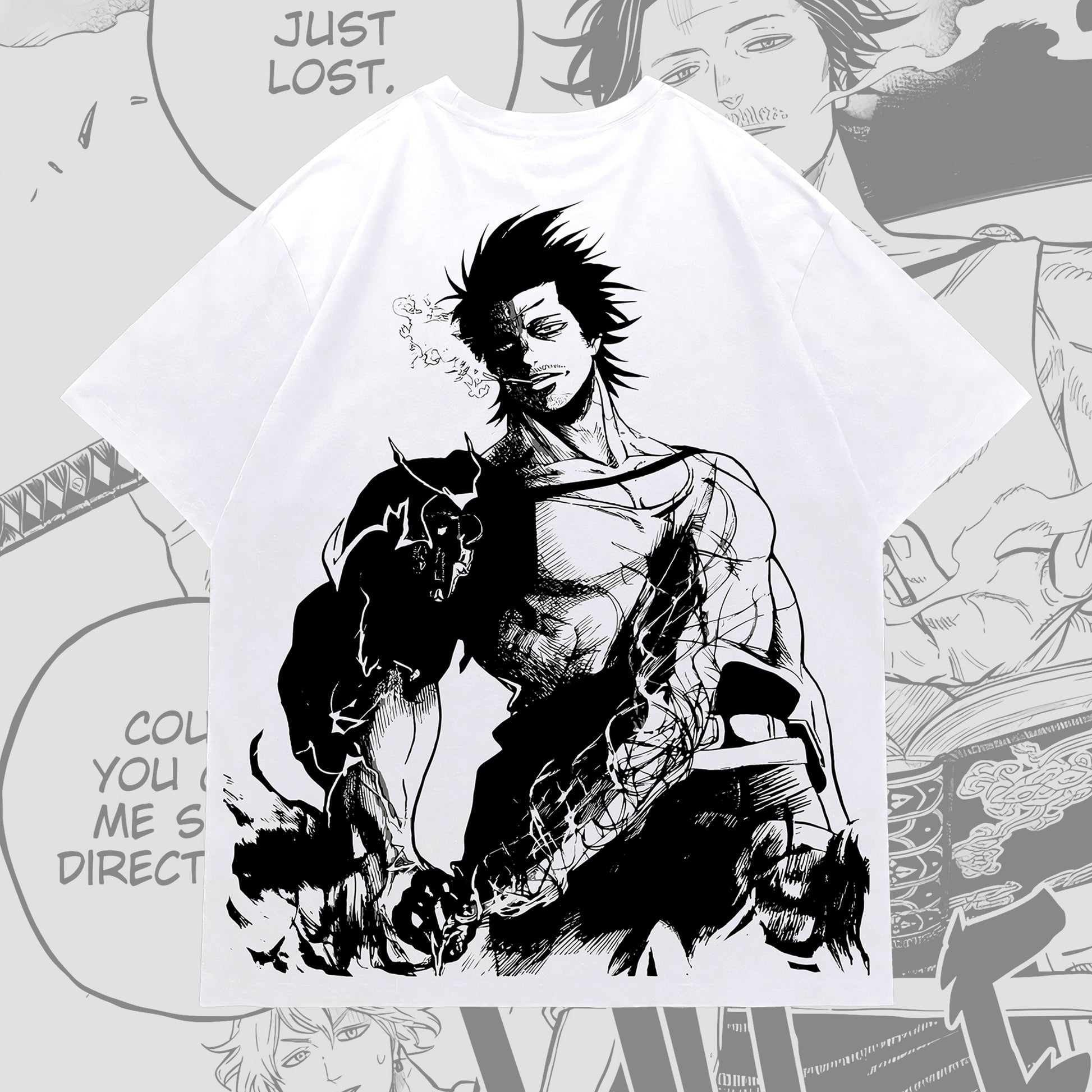 The front stays minimal with his iconic line, while the back hits hard with a bold, ink-heavy illustration that reflects Yami’s brutal strength, calm chaos, and refusal to back down.