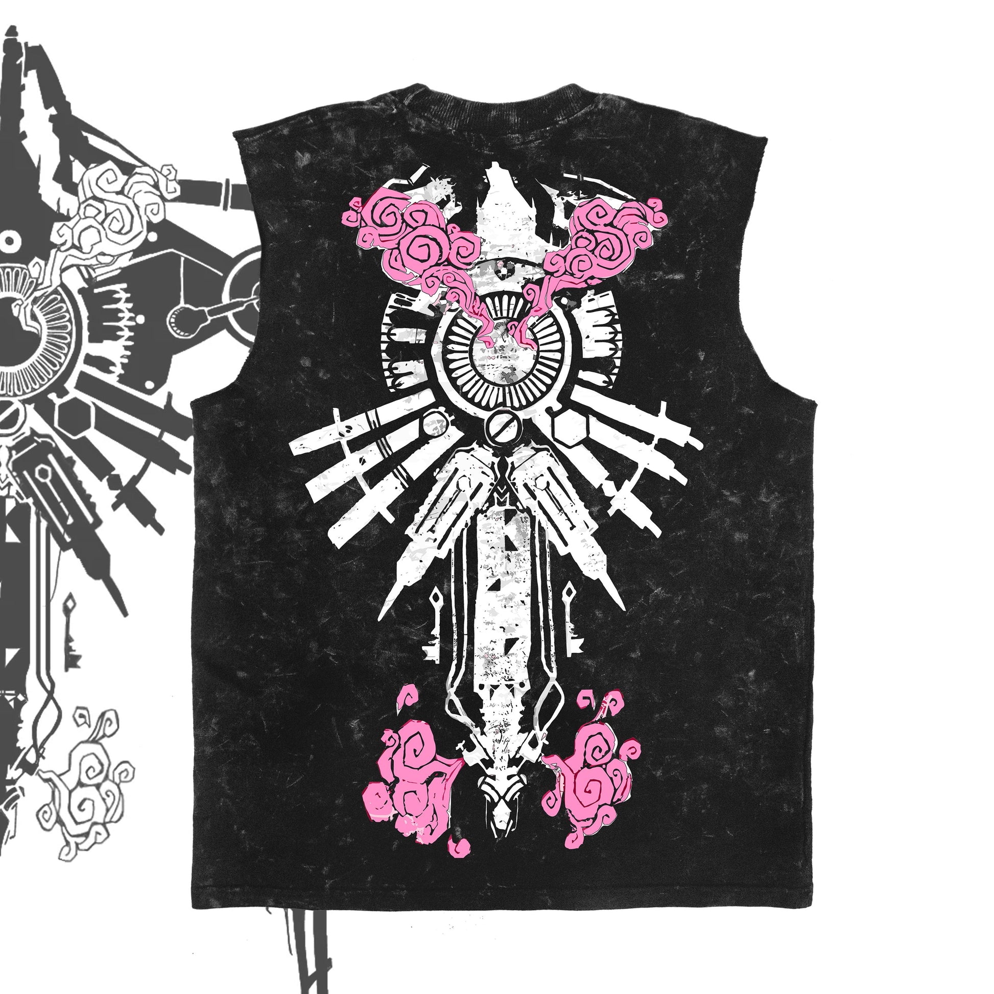 This acid-washed tank features a clean Zaunite chest hit with shimmer-pink detail — but the real punch is on the back. The bold design is a direct replica of Vi’s iconic back tattoo from Arcane, a symbol of her strength, grit, and Zaun-born firepower.